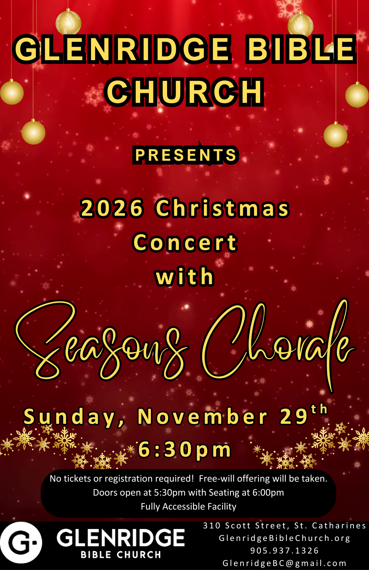 Seasons Chorale November 29, 2026 6:30pm...
